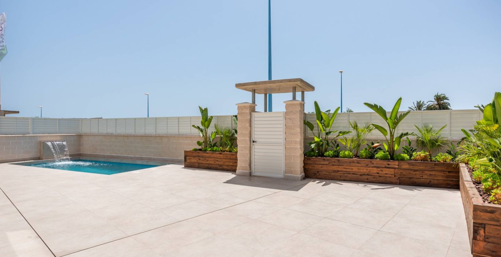 Alle haben ein privates Grundstück mit einem 6 x 3 Meter großen Swimmingpool mit farbigen Lichtern und Wasserfall, einem Terrassengarten und einem großen Solarium , wo Sie Ihren eigenen Chill-out-Bereich mit Vorinstallation für einen Whirlpool und eine Außenküche einrichten können . Der ideale Ort, um sich bei einem guten Drink zu entspannen, tagsüber und nachts Sonne zu tanken und in Stille die Sterne zu betrachten. Auf Anfrage können Sie auch einen Keller (optional) nutzen, der normalerweise als Erholungsraum genutzt wird.