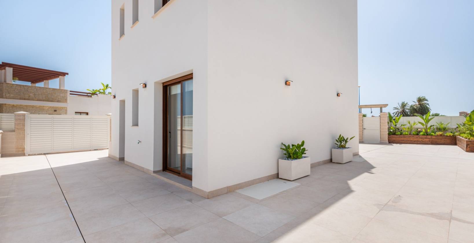 Dieses neu erbaute Anwesen in Vera ist Teil eines Wohnkomplexes mit 100 unabhängigen Villen, bekannt als Monte Carmelo Resort , ein Komplex aus Komfort, Eleganz und Design an den Ufern des Mittelmeers. Diese moderne Urbanisation ist in zwei Modelle unterteilt: Laguna Azul mit doppelter Höhe und Star-Modell, alle auf einer Etage. Diese Villa gehört zum ersten Modell, und bringt sein charmantes mediterranes Design mit Holzsockelleisten, Natursteinoberflächen und weißer Einschichtverkleidung zur Geltung und verleiht dem gesamten Anwesen mehr Leuchtkraft und Helligkeit.