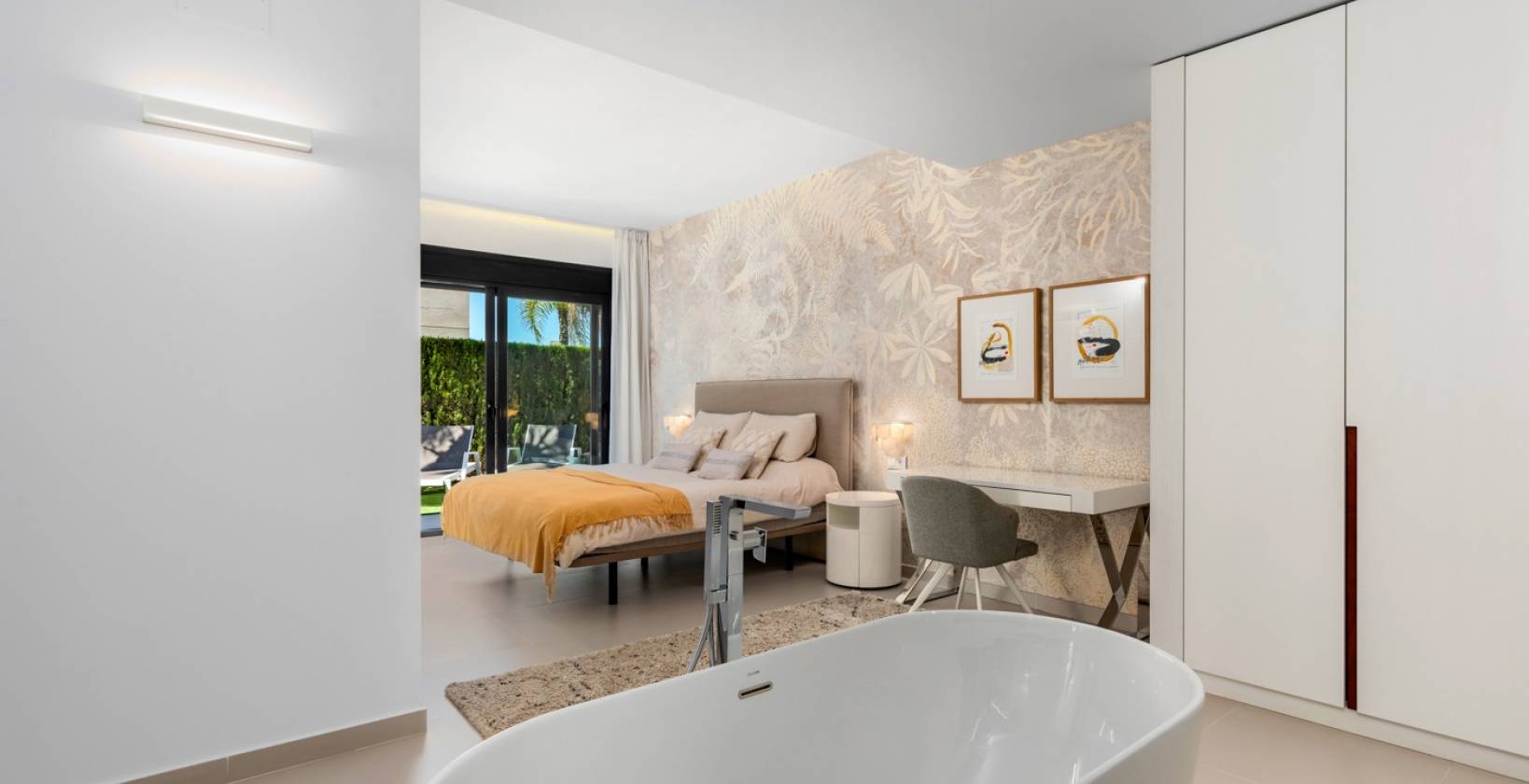 In dieser charmanten Villa aus zweiter Hand in Alicante werden Sie Luxus, Komfort und Eleganz erleben. Die Villa 122, Modell Marta, befindet sich in der prestigeträchtigen Residencial Amay Deluxe und zeichnet sich nicht nur durch ihre herrliche Lage, sondern auch durch ihr exquisites Design und ihre hochwertigen Details aus. Nur wenige Minuten von den Stränden von Dehesa de Campoamor entfernt, bietet diese Villa eine perfekte Kombination aus Ruhe und Nähe zum Meer.