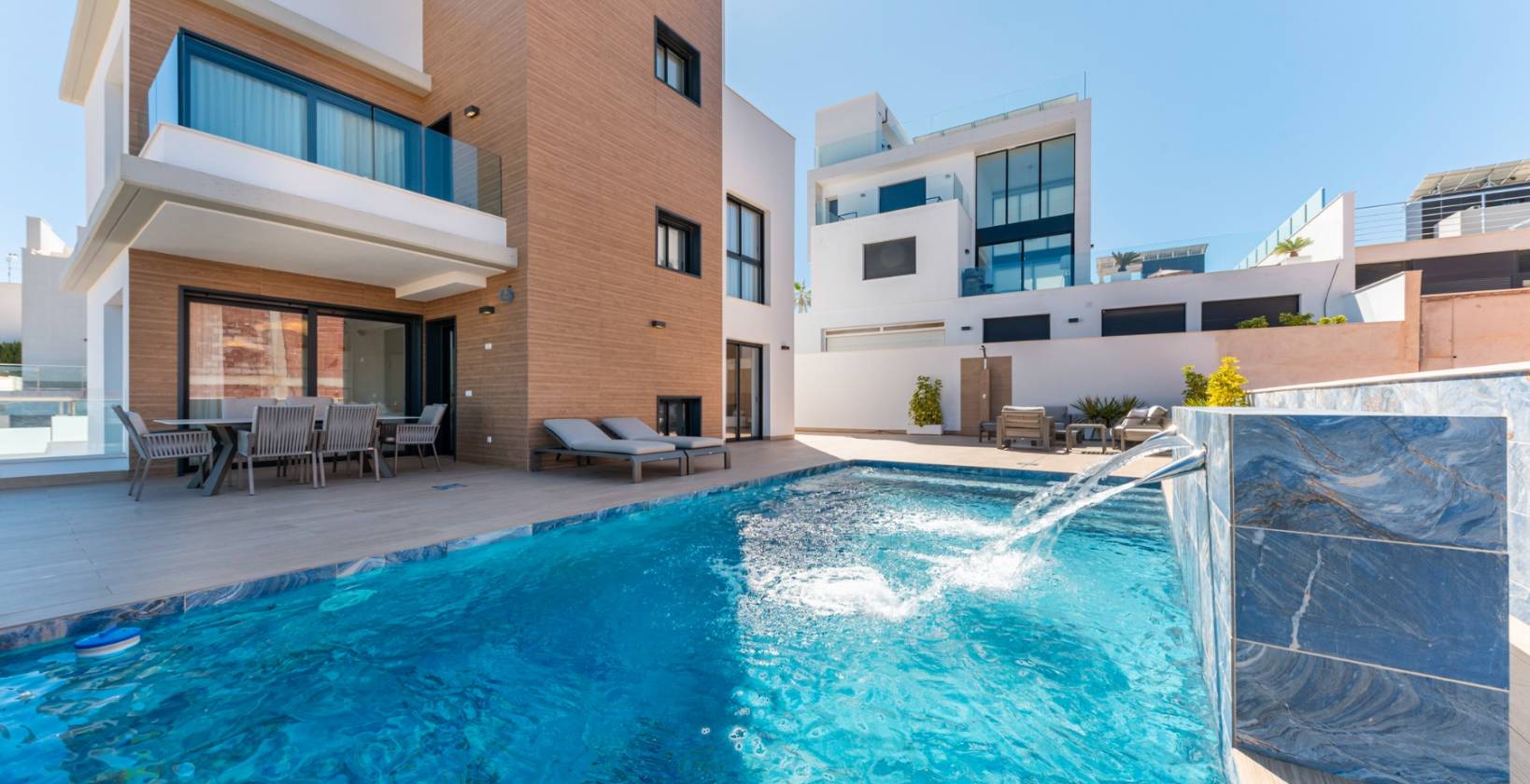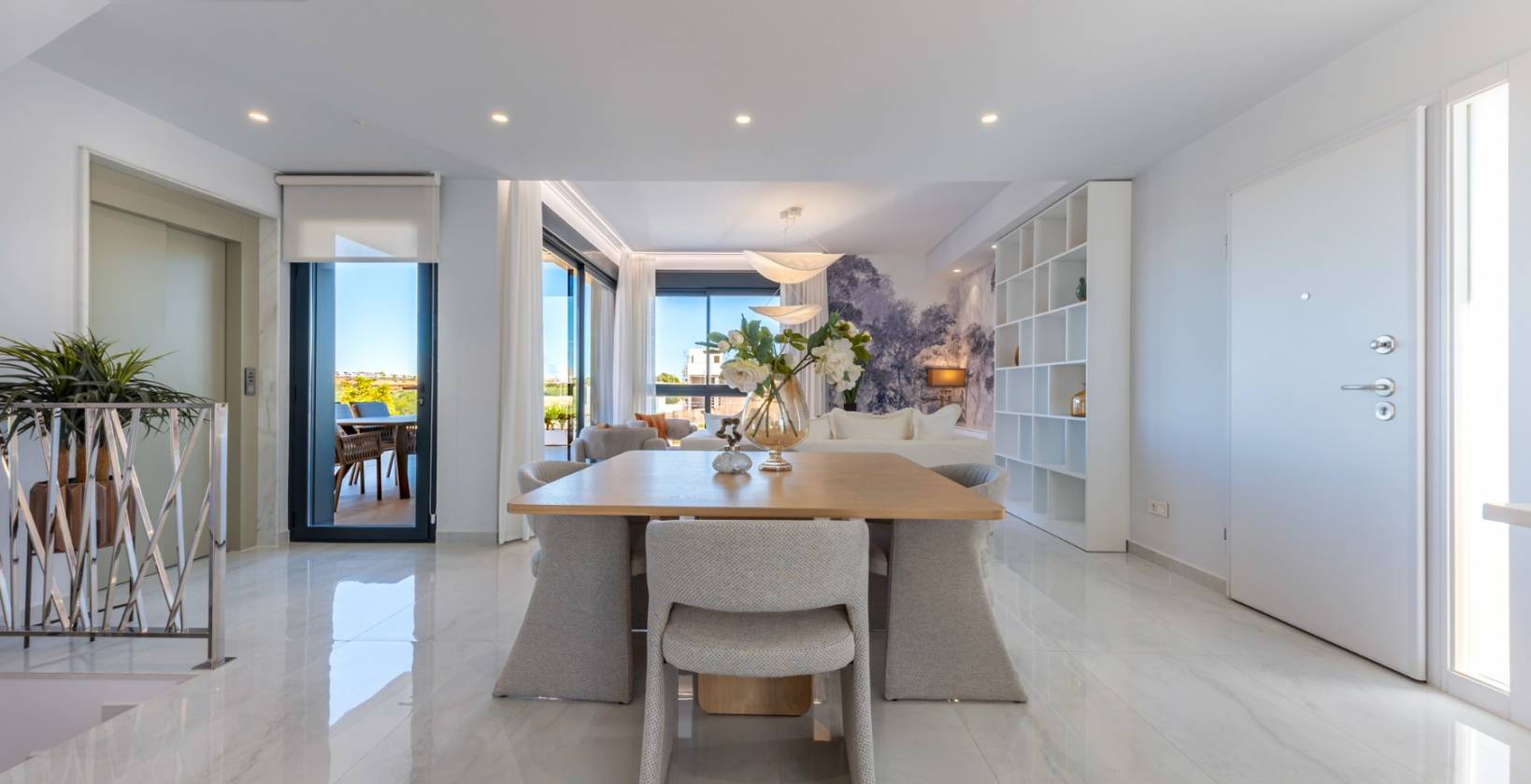 Entdecken Sie die beeindruckende Villa Silvia in Dehesa de Campoamor, ein Anwesen, das Ihnen das Beste an Raum, Komfort und Stil bietet. Mit einer Gesamtfläche von 157m² umfasst diese Villa: