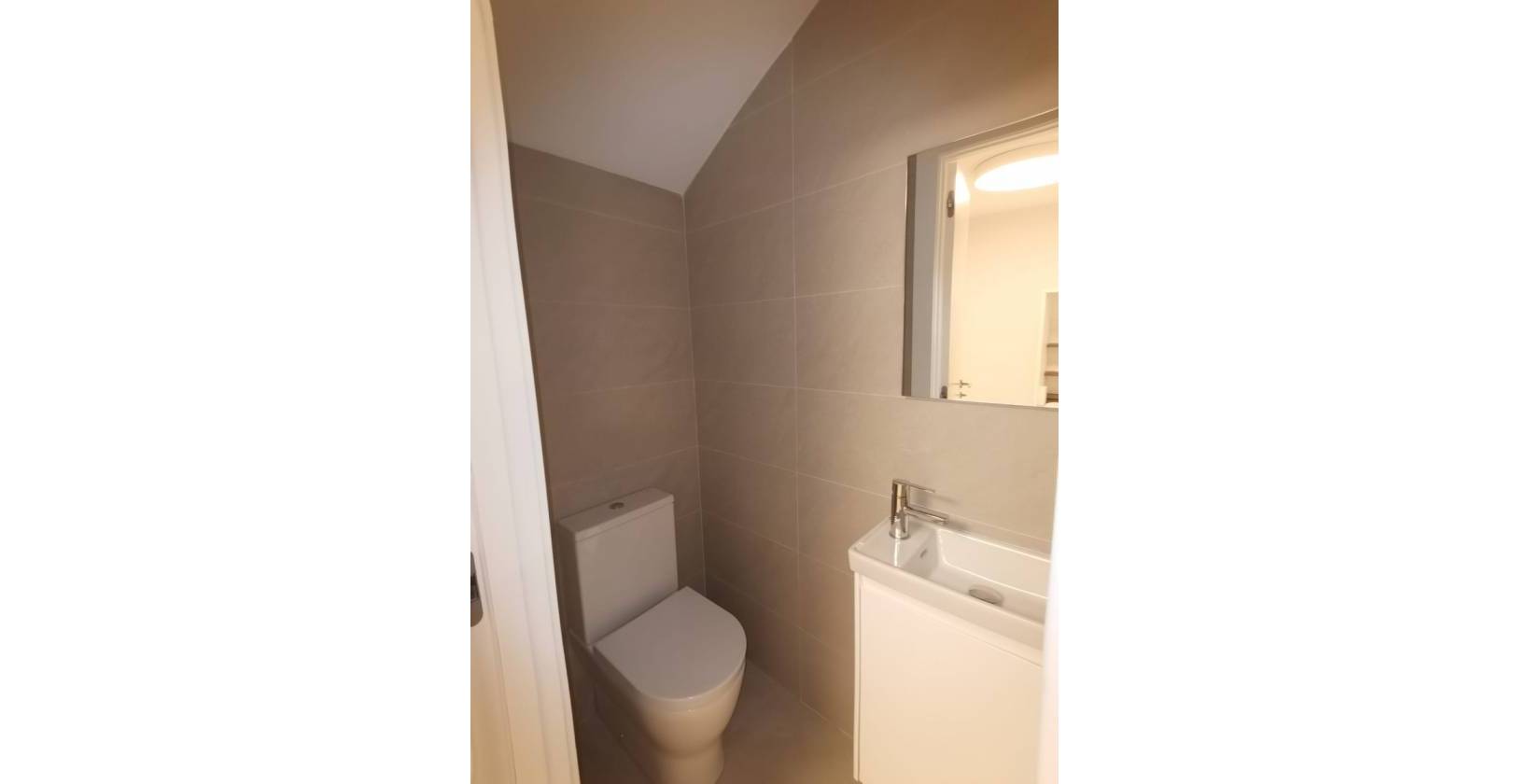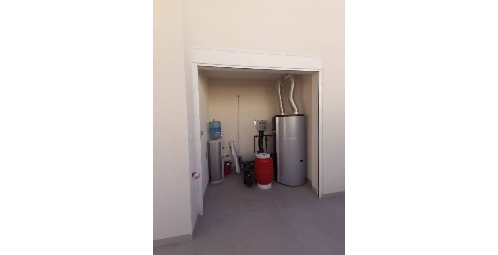 The villa has a solarium where an outdoor kitchen can be placed and where there is a pre-installation for a jacuzzi. Of course there is a private swimming pool of 3.3m x 6.5m and it is equipped with a wide waterfall of 1.20m, colored LED lighting and a bench to sit on under the waterfall. You can also park your car on your own property behind the gate. The house is energy efficient designed with high quality materials using the most careful technology and they offer the utmost comfort to our customers.