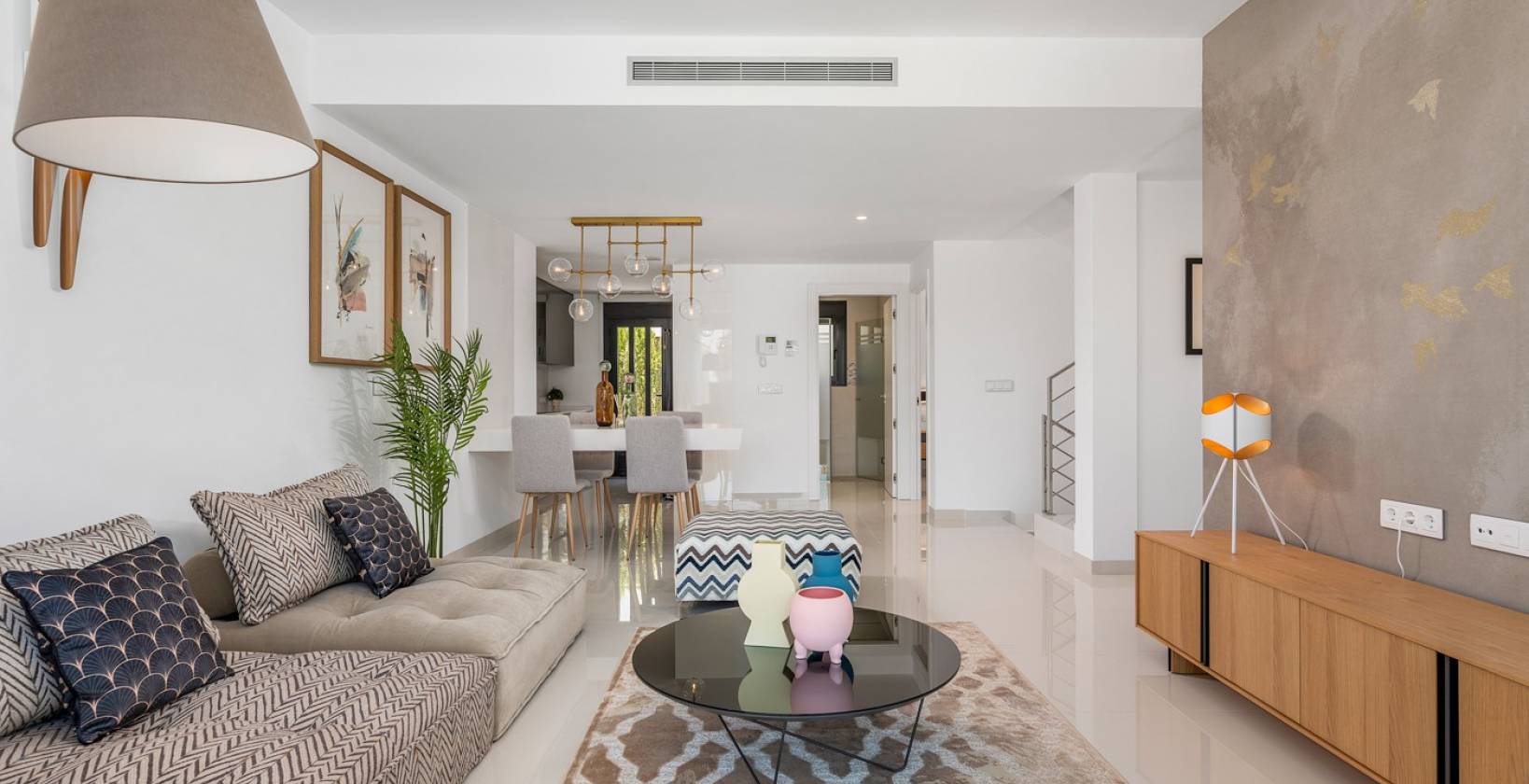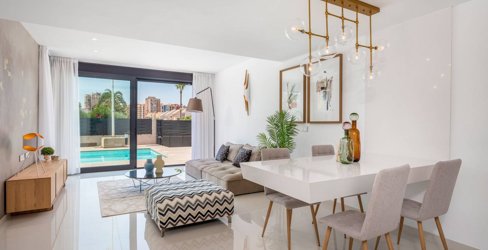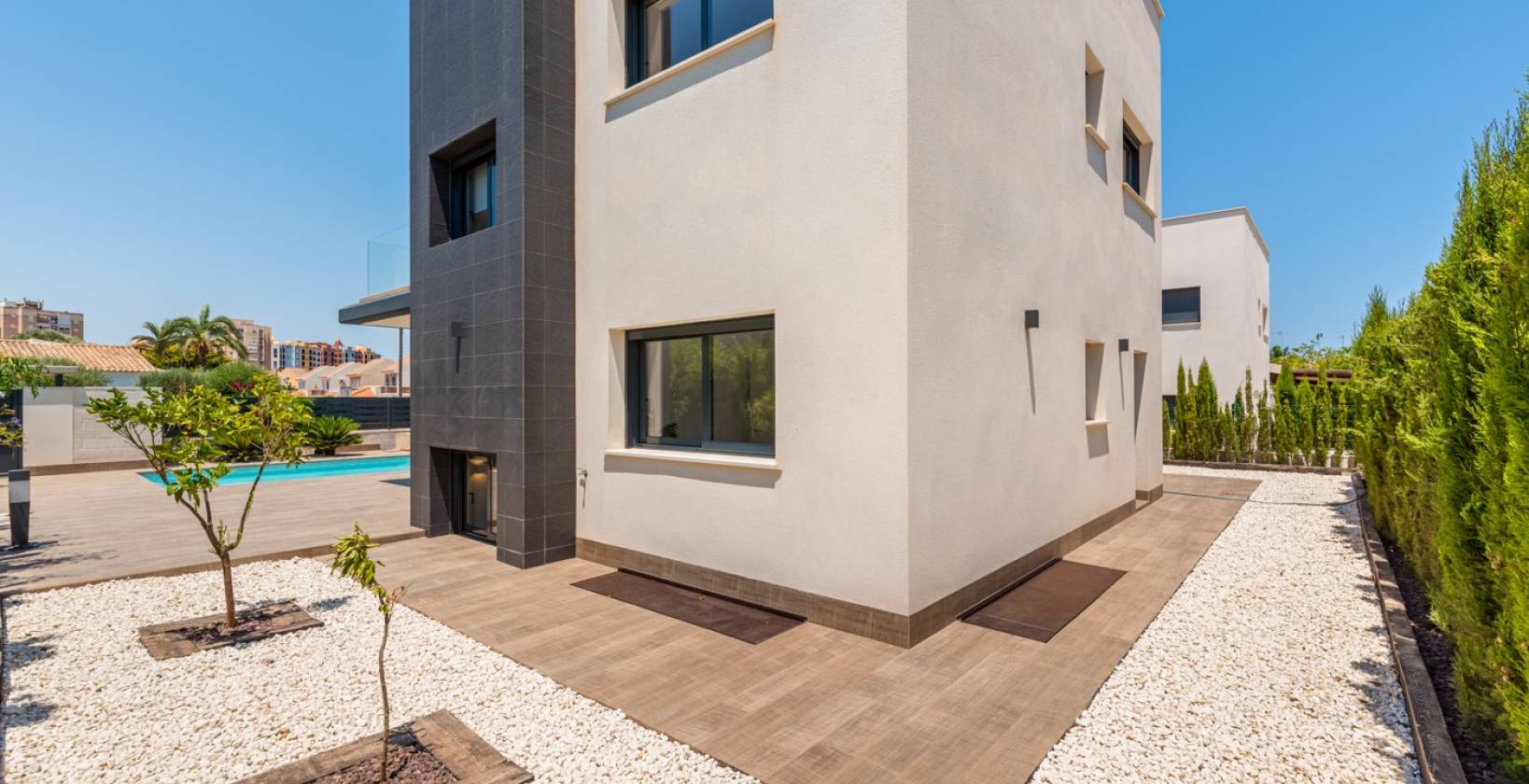 Stel je voor dat je elke dag wakker wordt in deze indrukwekkende nieuw gebouwde villa, gelegen in een van de meest exclusieve en rustige omgevingen in La Manga. Met een perceel van 639 m² en een noordoostelijke oriëntatie is dit huis ontworpen om het natuurlijke licht te maximaliseren en ongeëvenaard comfort te bieden.