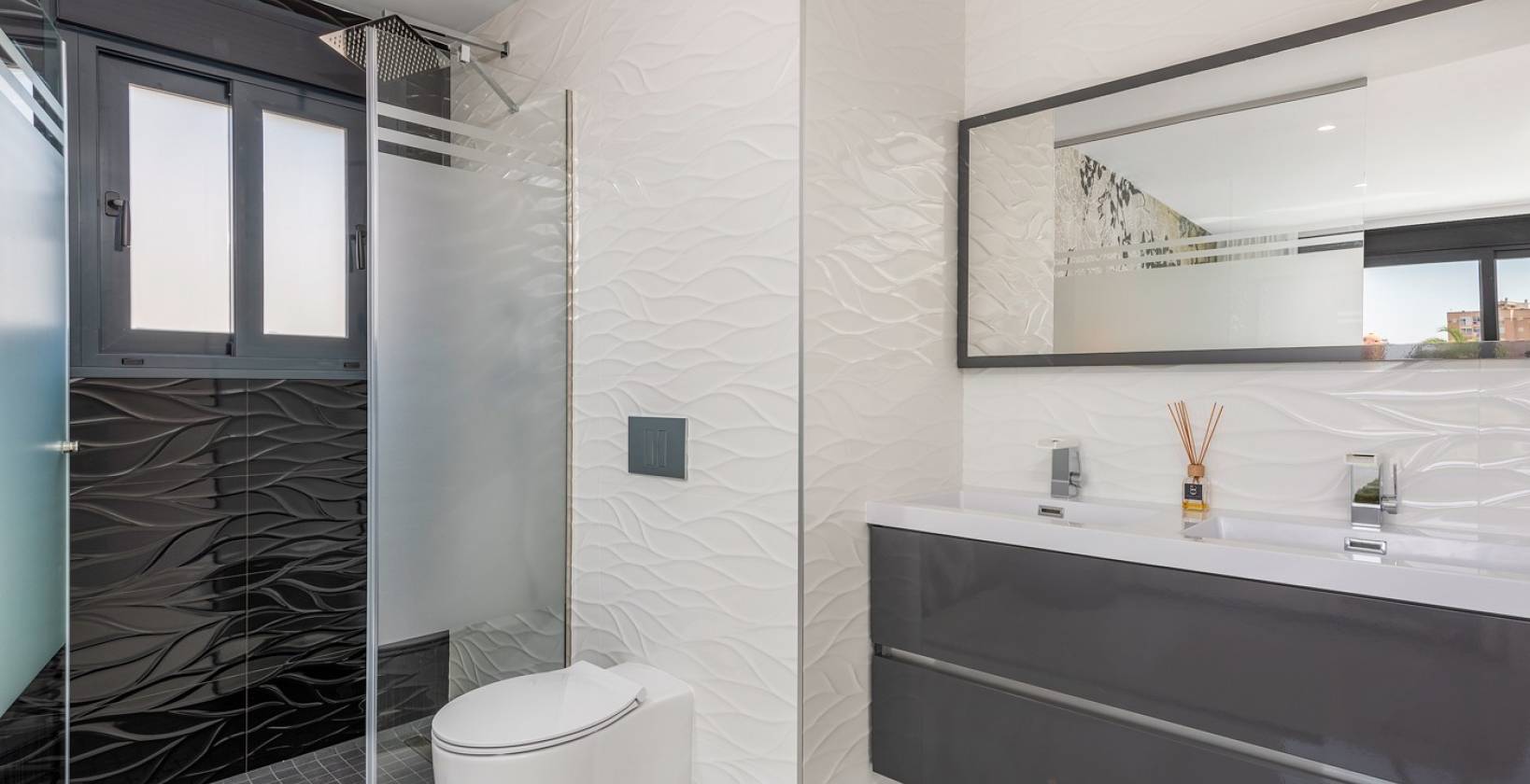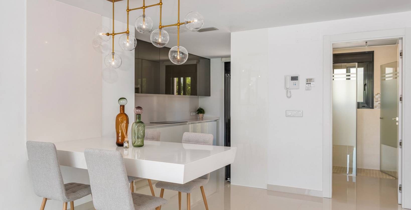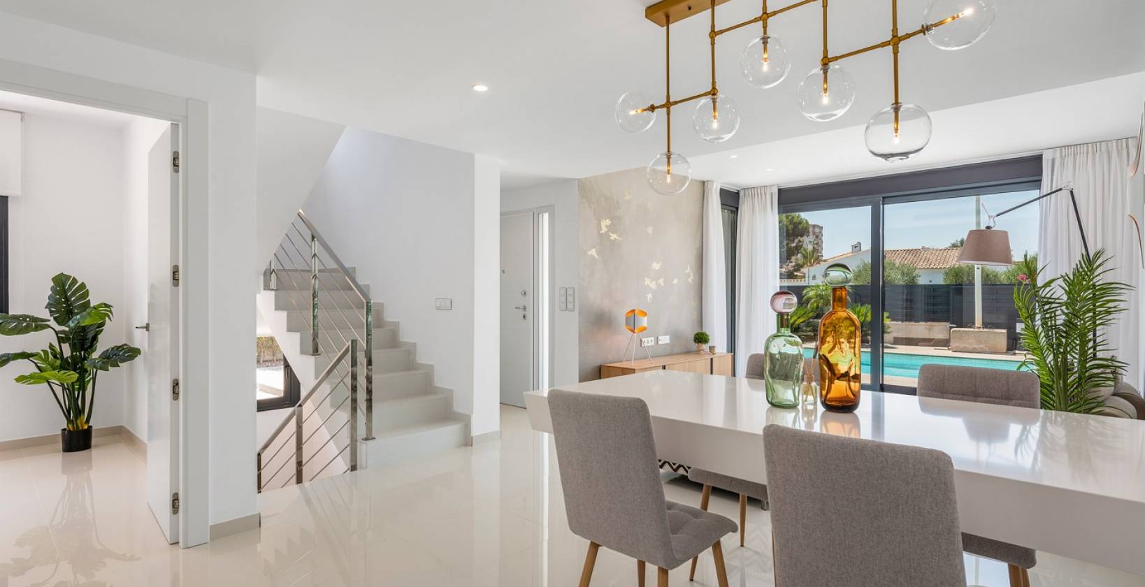 De villa beschikt over 3 grote slaapkamers en 3 badkamers, allen voorzien van vloerverwarming en vaste glaswanden. Bovendien is hij voorbereid op de toekomst met een meegeleverde oplader voor elektrische auto's, ontworpen voor wie op zoek is naar een moderne en duurzame levensstijl.