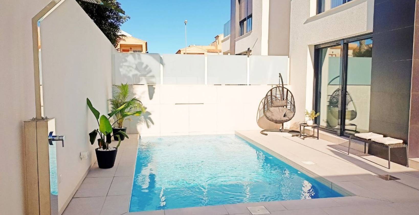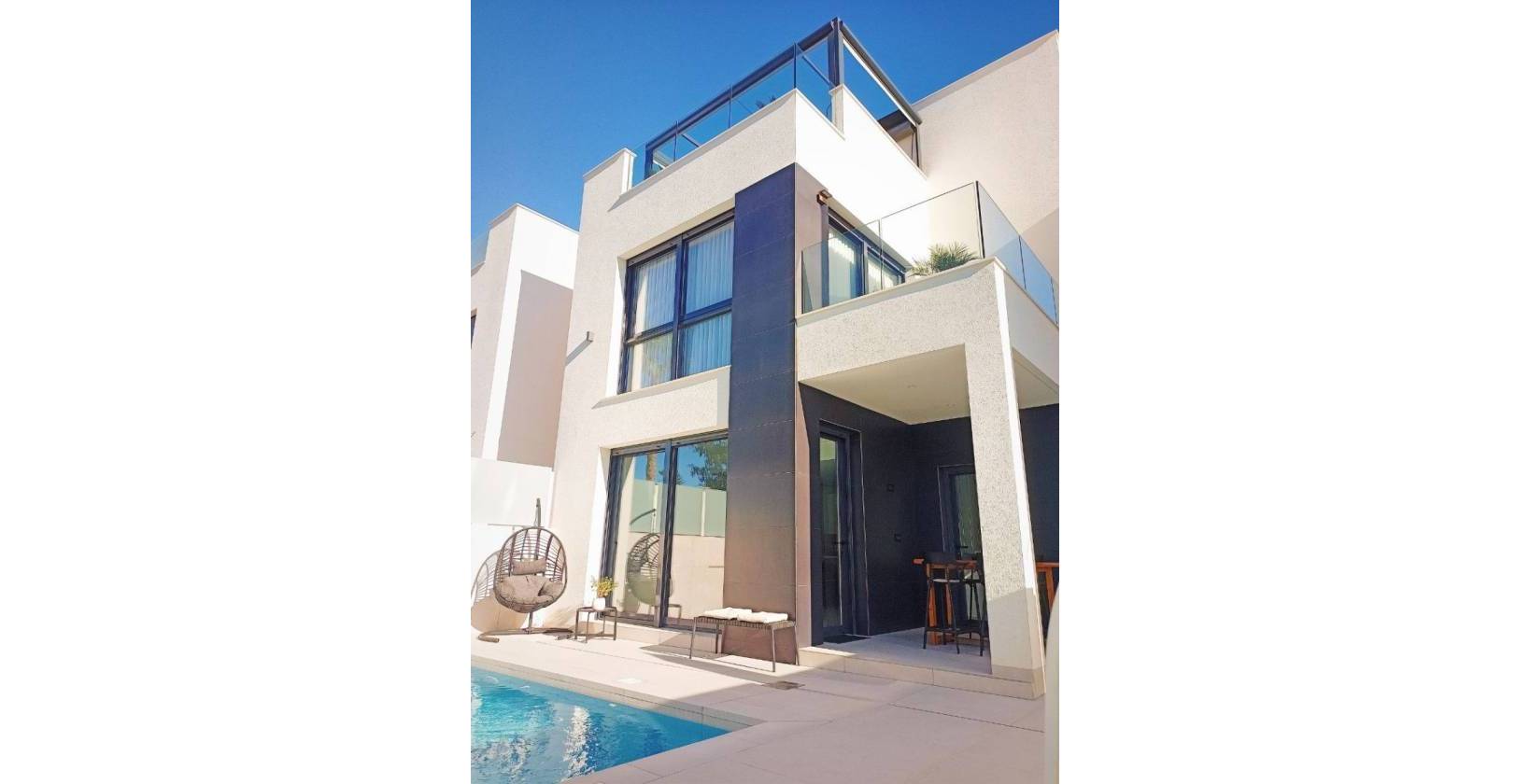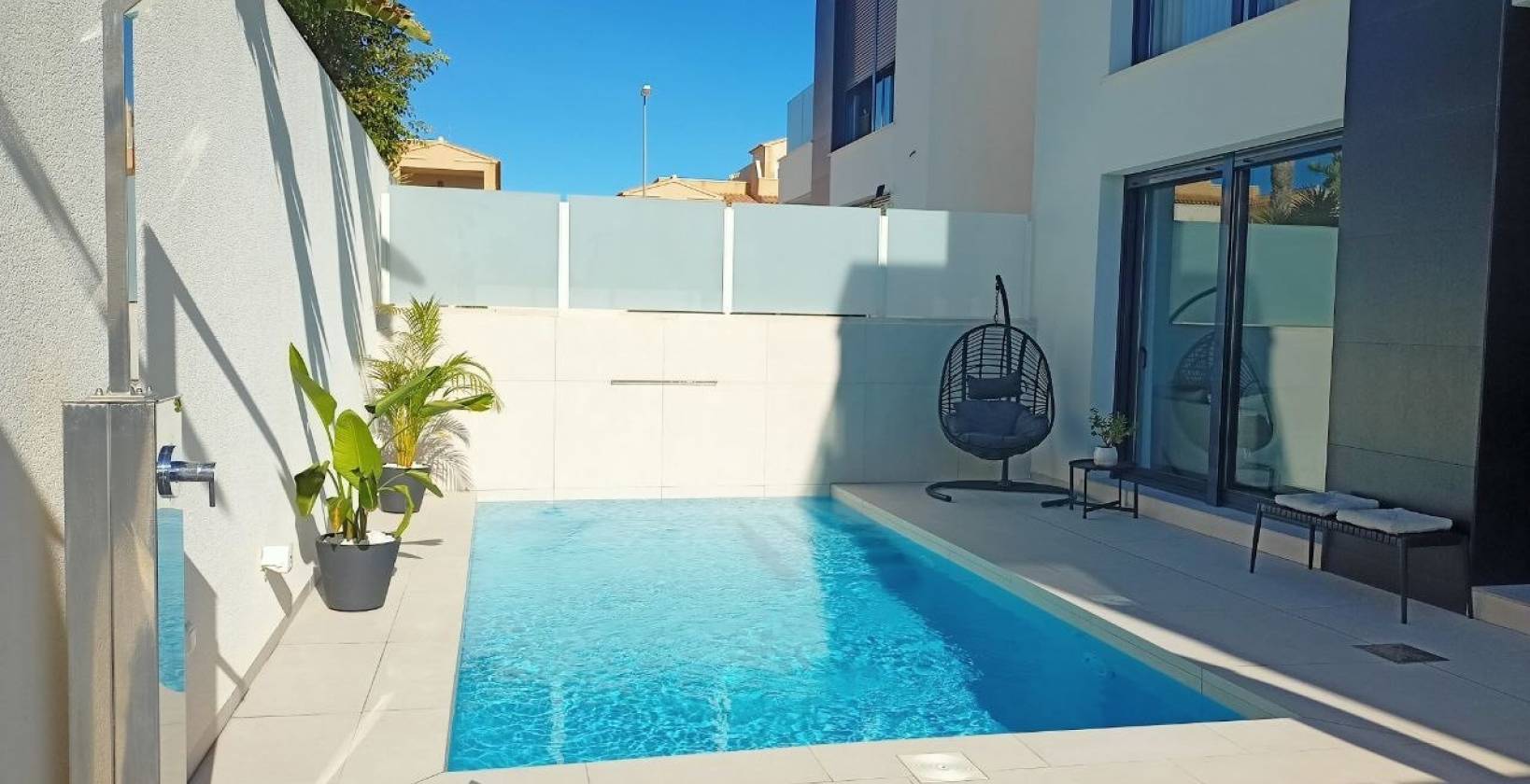 Tal vez la casa más hermosa de todos los tiempos. Esta increíble villa de nueva construcción en Punta Prima parece caída del cielo. El solárium te va a robar más de una sonrisa. Y a tus hijos les encantará la bonita piscina y el gran espacio del jardín y la terraza.