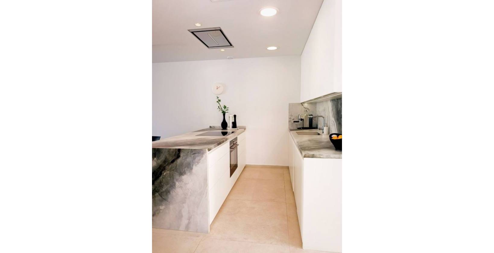 En esta propiedad sentirás la comodidad en cada espacio. Desde esta cocina abierta al salón podrás controlarlo todo. No perderás de vista a tus hijos mientras disfrutan de los chapuzones en la piscina con sus nuevos amigos durante los veranos o incluso podrás mantener el ritmo de la conversación de tus invitados a la vez que preparas un delicioso aperitivo.