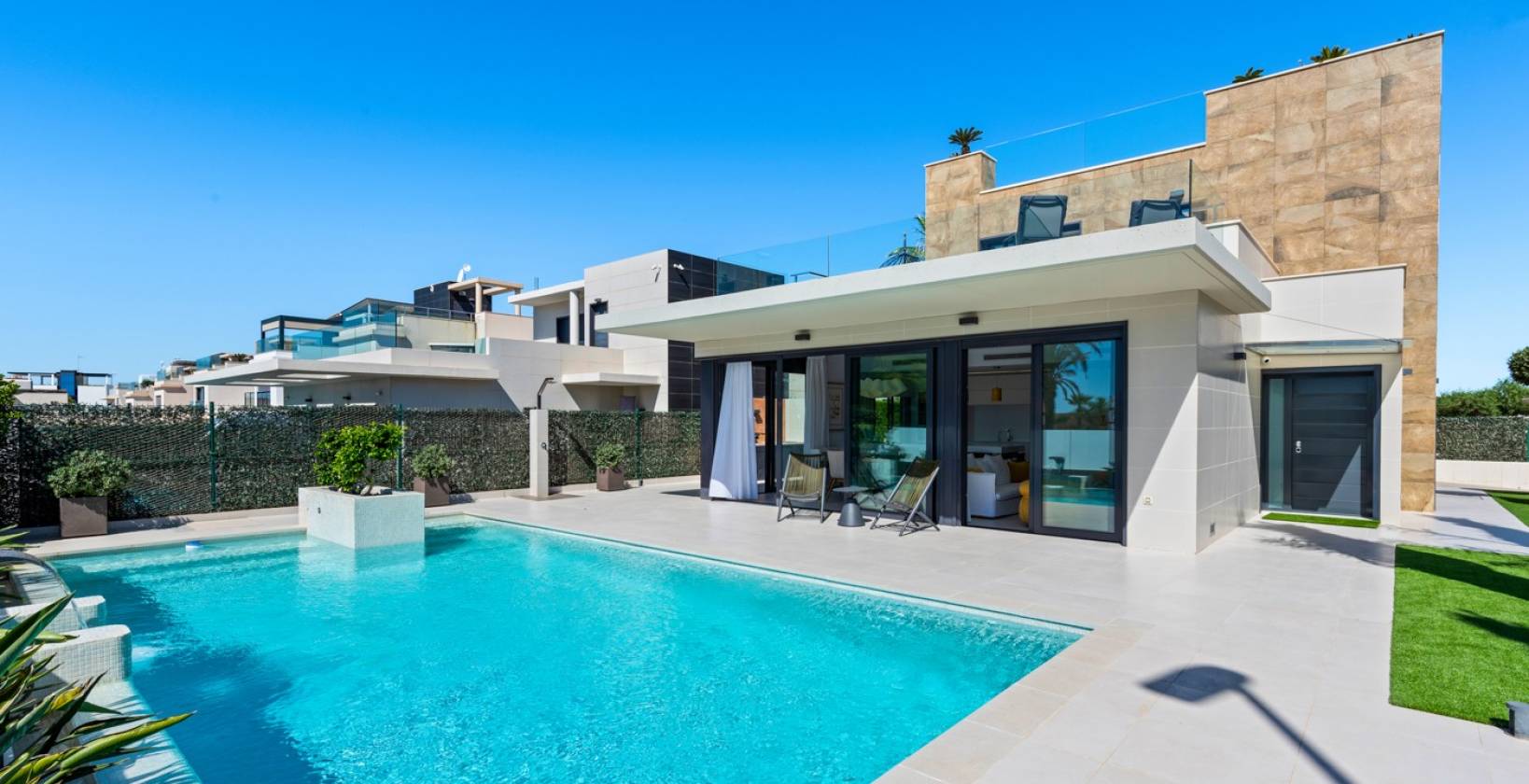 En esta encantadora villa de segunda mano en Alicante vivirás una experiencia de lujo, comodidad y elegancia. Situada en el prestigioso Residencial Amay Deluxe, la villa 122, modelo Marta, es una propiedad que destaca no solo por su magnífica ubicación, sino también por su exquisito diseño y detalles de alta calidad. A tan solo unos minutos de las playas de la Dehesa de Campoamor, esta villa ofrece una combinación perfecta de tranquilidad y cercanía al mar.