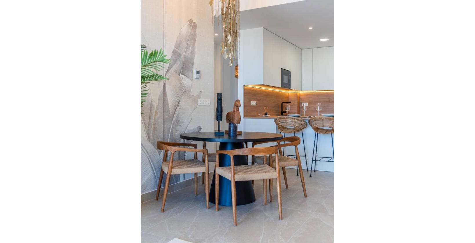 El apartamento dispone de 3 amplios dormitorios y 2 lujosos baños, 1 de ellos en suite. El otro dormitorio tiene acceso a la terraza a través de puertas correderas. El apartamento dispone de armarios empotrados acabados con cajones en los dormitorios para guardar toda tu ropa. La cocina de lujo está incluida en el precio y está equipada con electrodomésticos de primera marca de bajo consumo y, por supuesto, el lavavajillas está incluido.