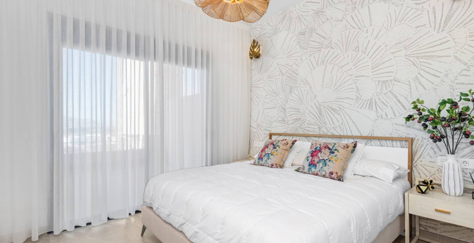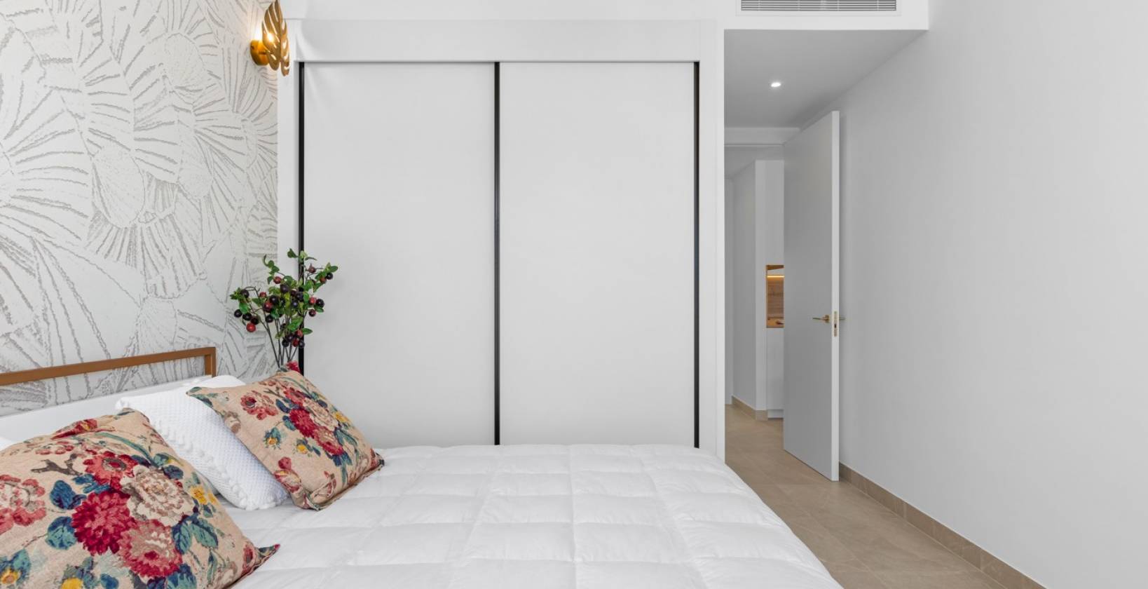 El apartamento dispone de 4 amplios dormitorios y 2 lujosos baños, 1 de ellos en suite. El otro dormitorio tiene acceso a la terraza a través de puertas correderas. El apartamento dispone de armarios empotrados acabados con cajones en los dormitorios para guardar toda tu ropa. La cocina de lujo está incluida en el precio y está equipada con electrodomésticos de primera marca de bajo consumo y, por supuesto, el lavavajillas está incluido.