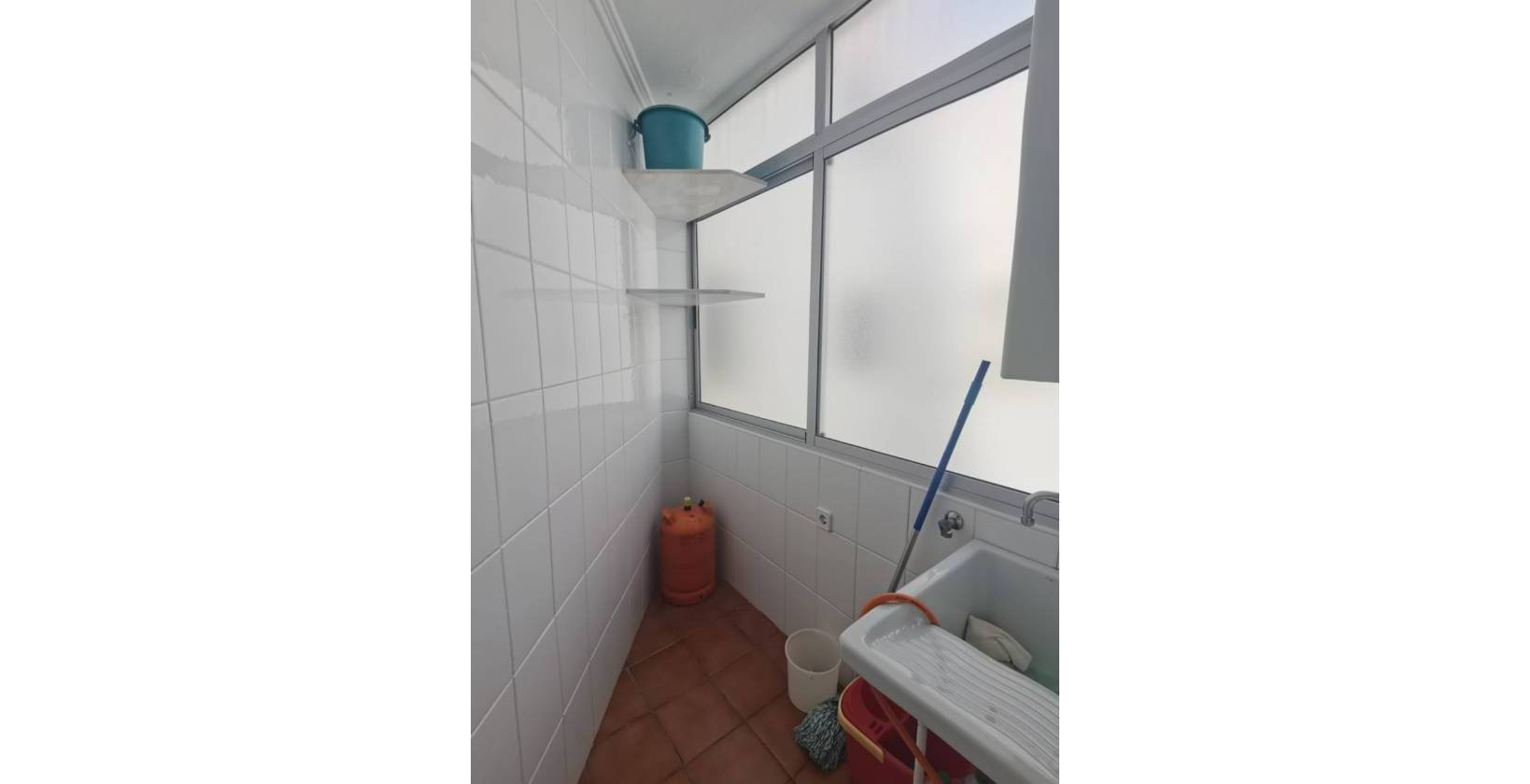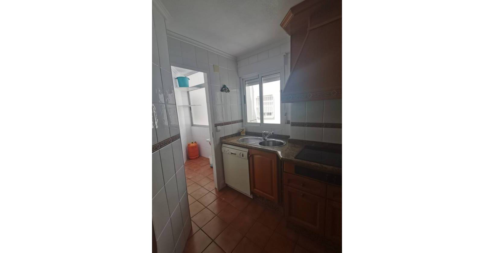 Cocina completa con electrodomesticos y terraza con vistas panoramicas al mar.