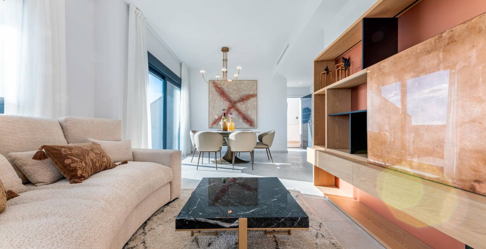 Este modelo de vivienda es muy atractivo en una zona tan soleada como la Costa Blanca, ya que disfruta de abundantes zonas de descanso al aire libre, como terrazas, piscina comunitaria, jardines y zonas verdes donde tomar el aire, respirar y desconectar un tiempo de la rutina.
